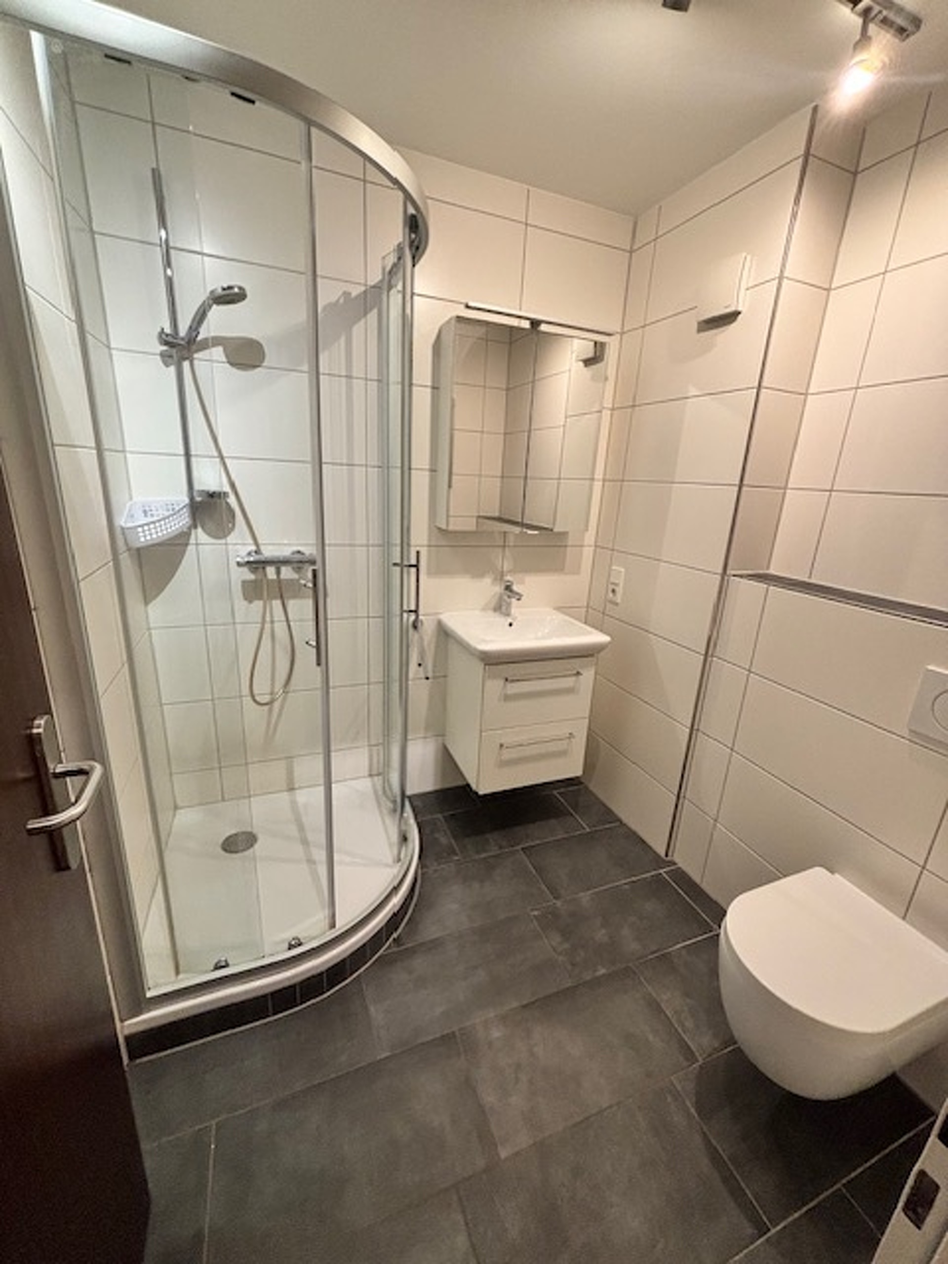 Une salle de douche avec WC,