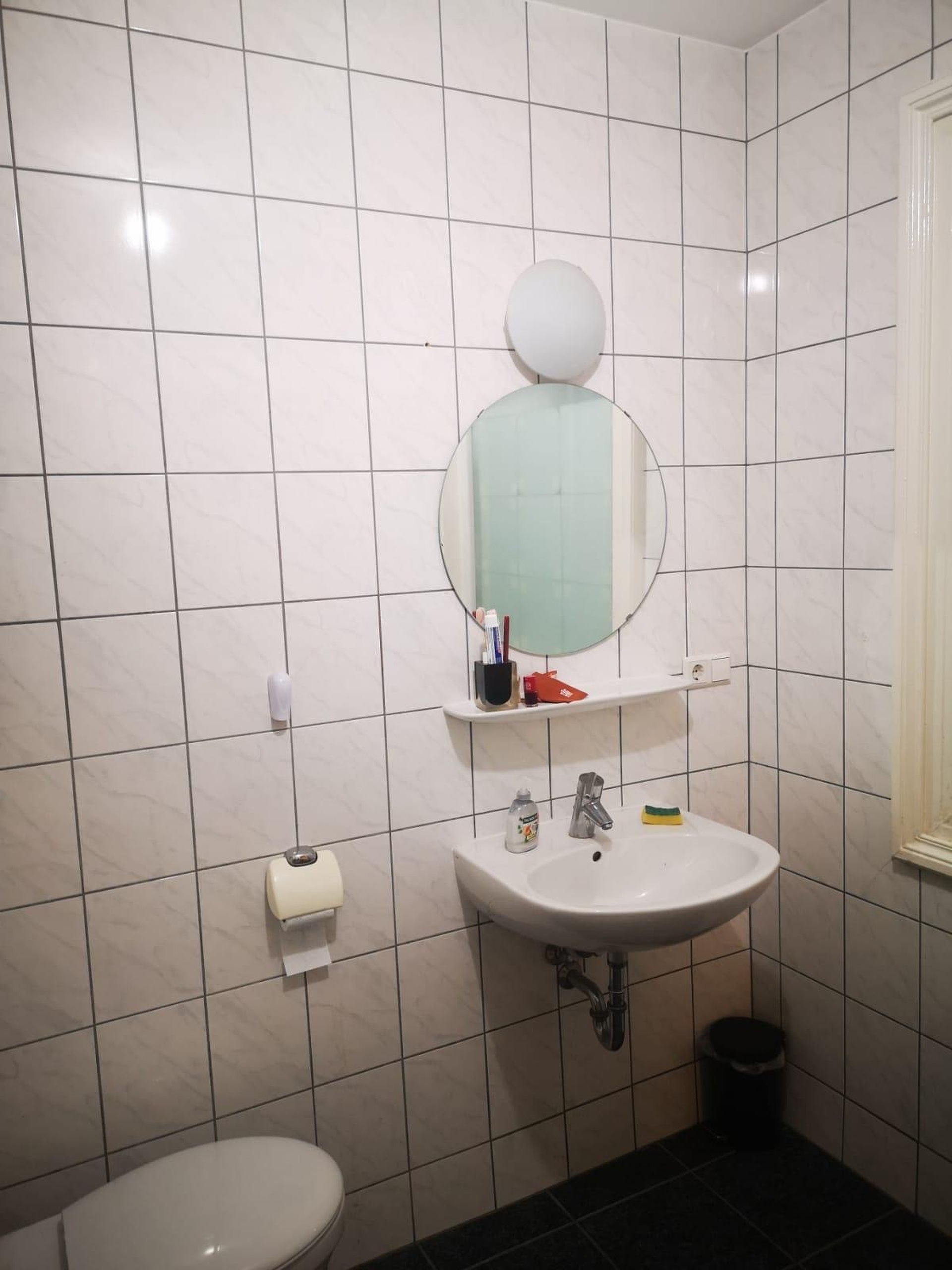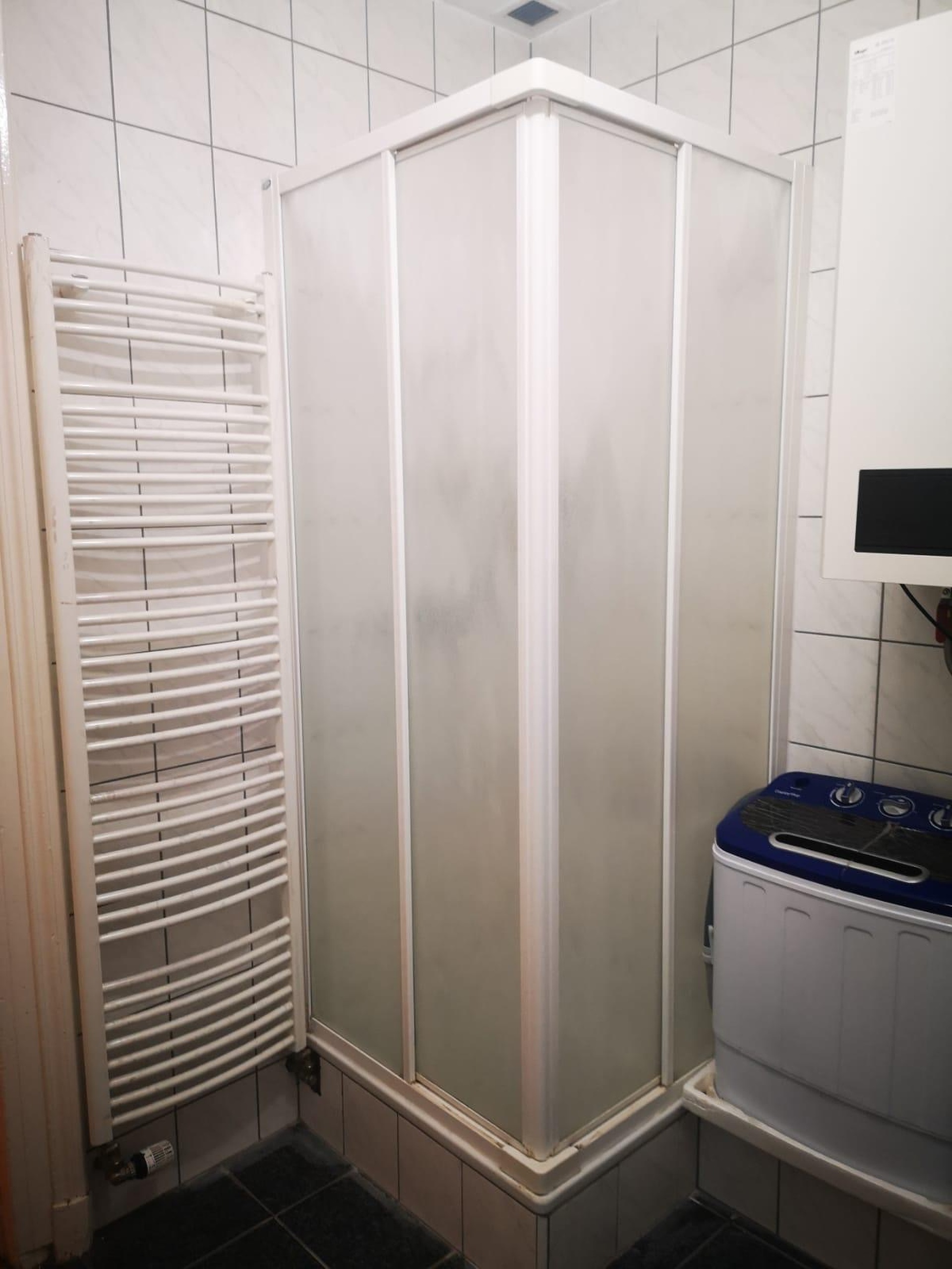 Salle de douche avec WC et espace buanderie