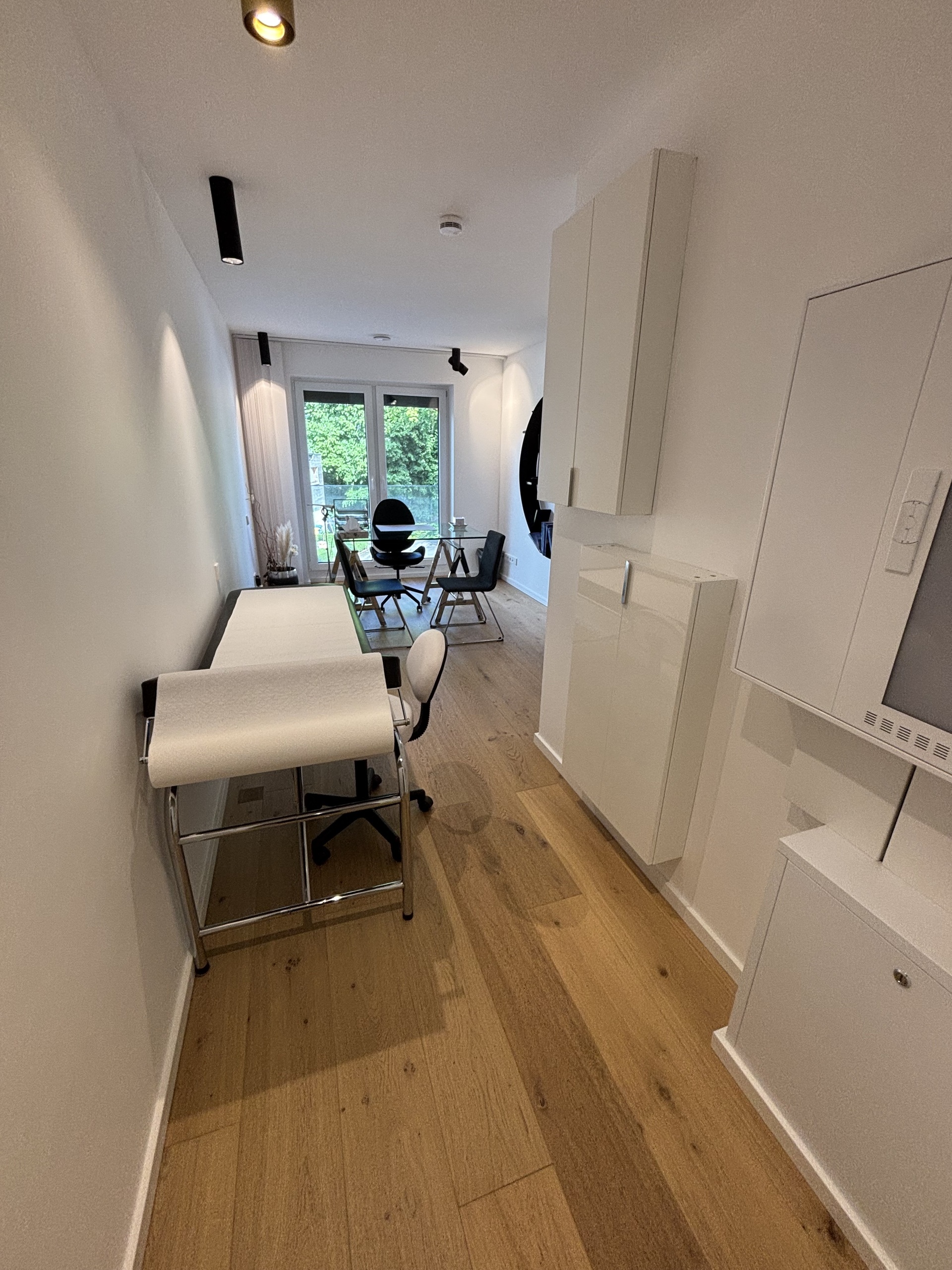 ce local se dispose de 2 bureaux pour 2 médecins et 1 réception et 1 salle d'attente à partager.